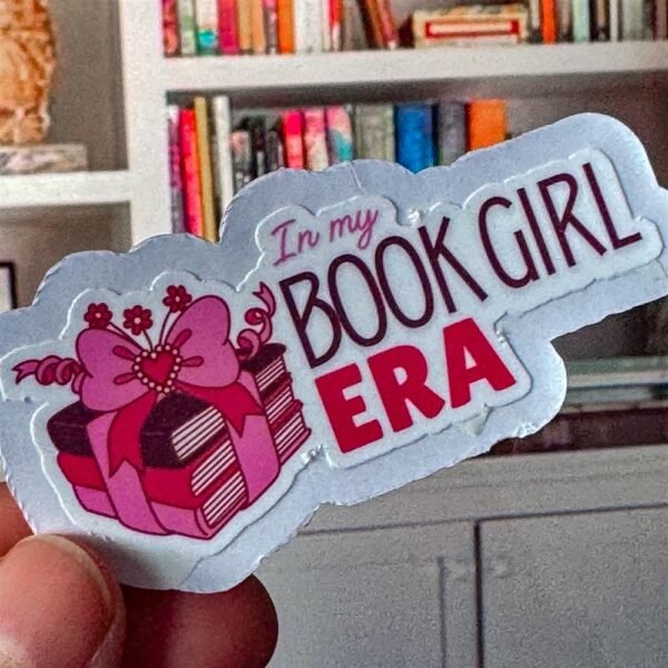 Celebrate your reading era with this bold and playful “In My Book Girl Era” sticker 💖📚