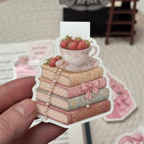 4 × double-sided magnetic bookmarks (matching coquette-style designs)