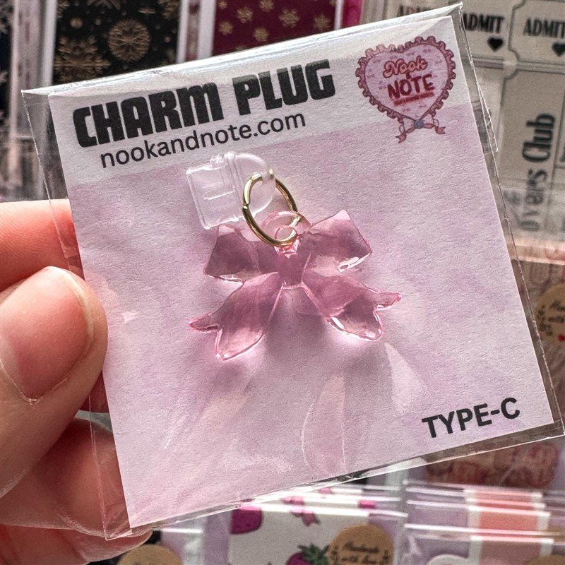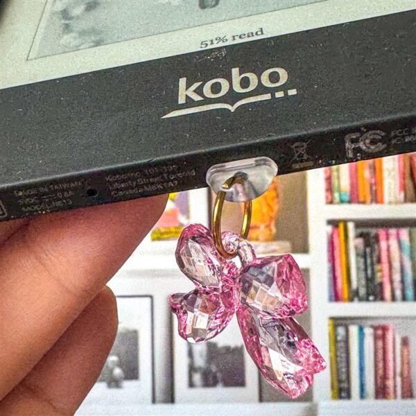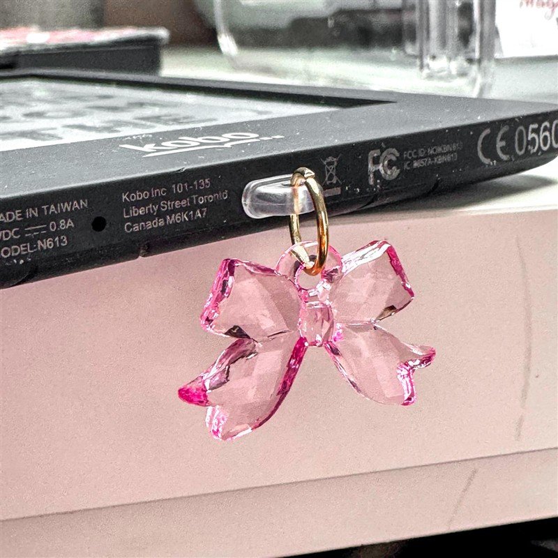 Add a delicate, coquette touch to your e-reader, phone, or tablet with this pink glass bow charm plug. It slots into the charging port to decorate your device while helping keep dust out—perfect for readers who love a little sparkle.