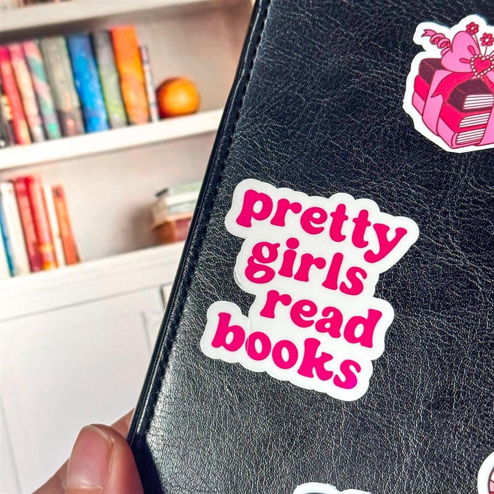 Make a bold statement with this playful “Pretty Girls Read Books” sticker 💕