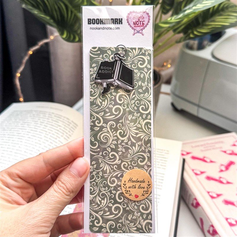 A reversible floral bookmark inspired by the timeless Dark Academia aesthetic. One side features an elegant sage green botanical pattern, while the other shows a warm rose red floral print. Thoughtfully handmade and laminated for durability, this bookmark adds a touch of vintage charm to every reading session.