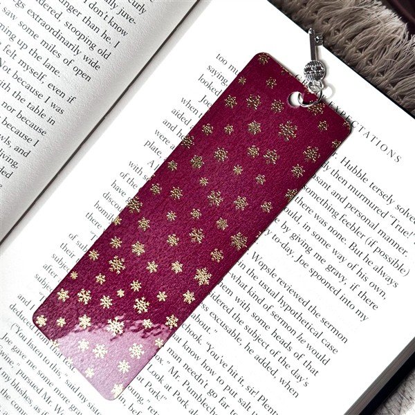 Add a touch of winter elegance to your reading moments with this snowflakes bookmark with key charm. Designed in rich burgundy tones with delicate snowflake details and subtle gold accents, it brings a cozy, magical feel to every page you mark.